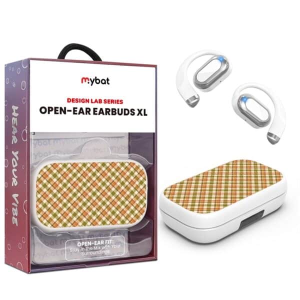 MyBat Design Lab Open-Ear Earbuds XL – White – Autumn Tartan