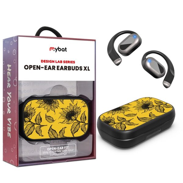 MyBat Design Lab Open-Ear Earbuds XL – Black – Golden Sunflowers