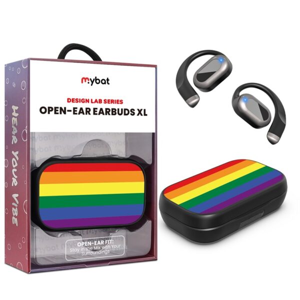 MyBat Design Lab Open-Ear Earbuds XL – Black – Rainbow Stripes