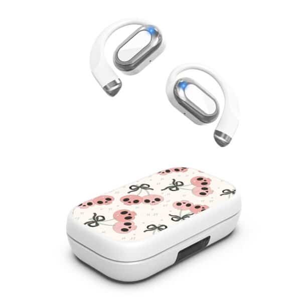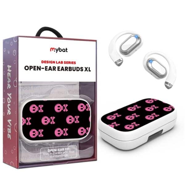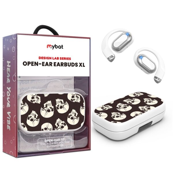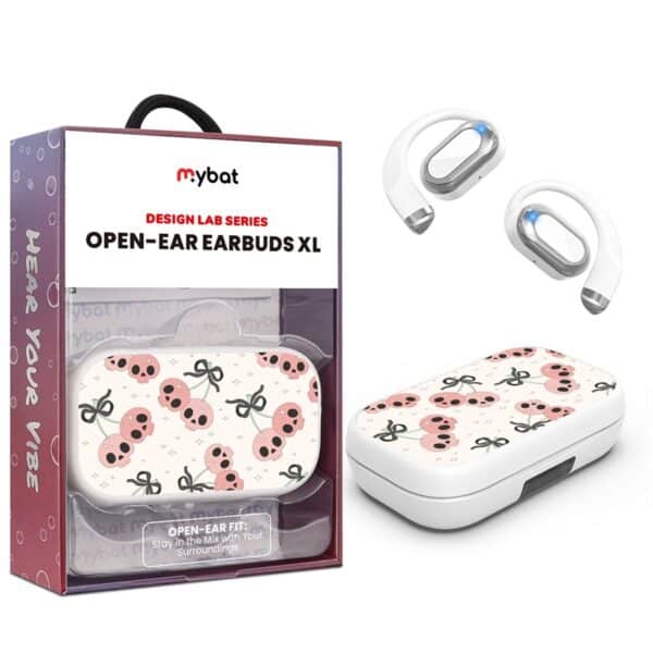 MyBat Design Lab Open-Ear Earbuds XL – White – Cherry Skulls