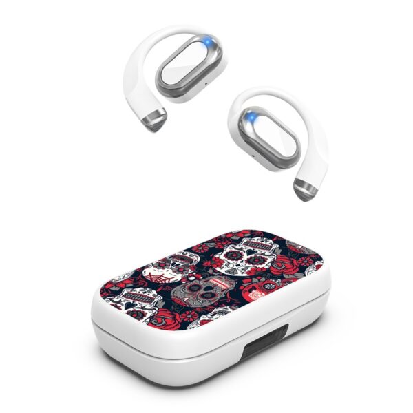MyBat Design Lab Open-Ear Earbuds XL – White – Sugar Rose Skulls