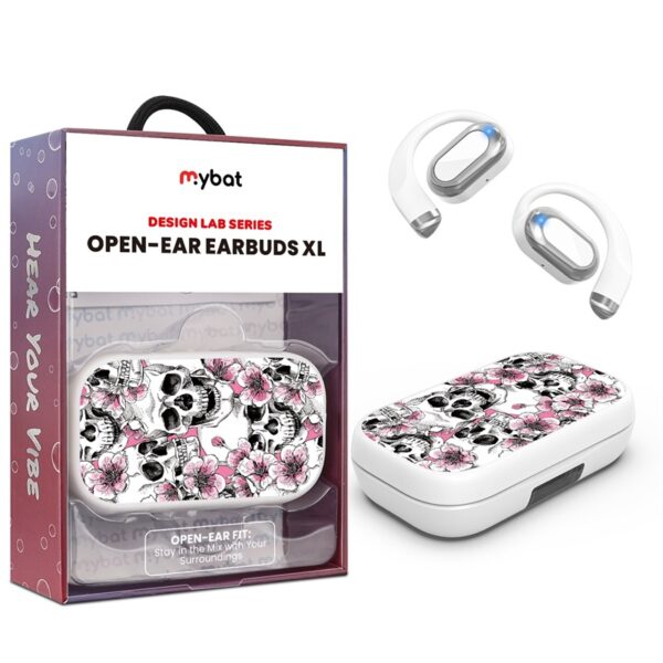 MyBat Design Lab Open-Ear Earbuds XL – White – Death Blooms