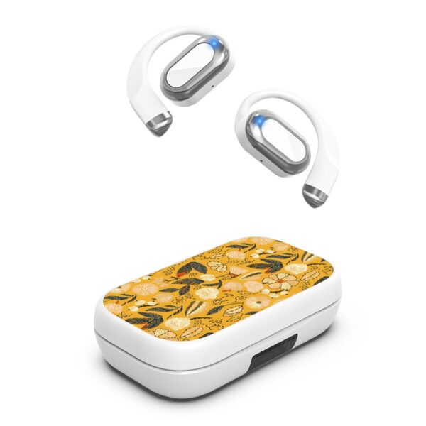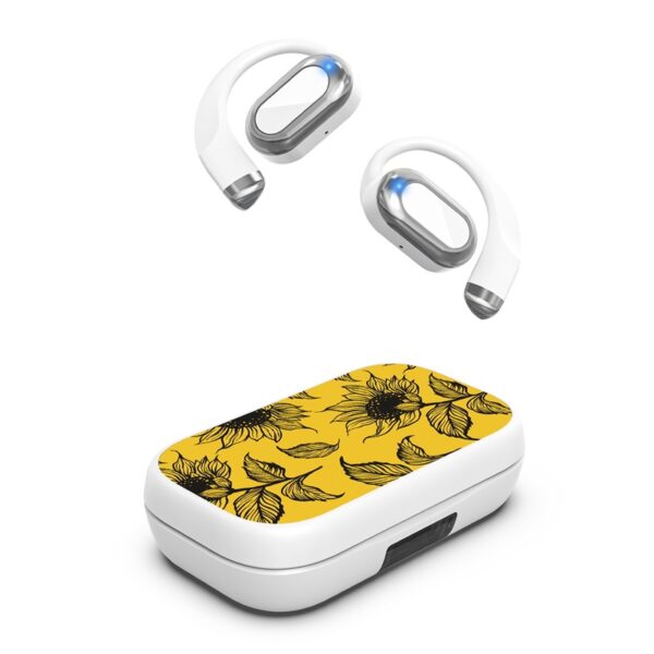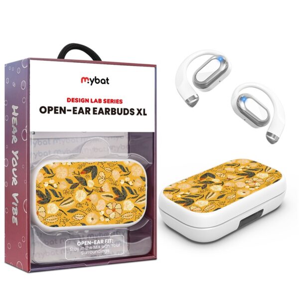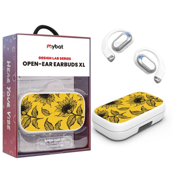 MyBat Design Lab Open-Ear Earbuds XL – White – Golden Sunflowers