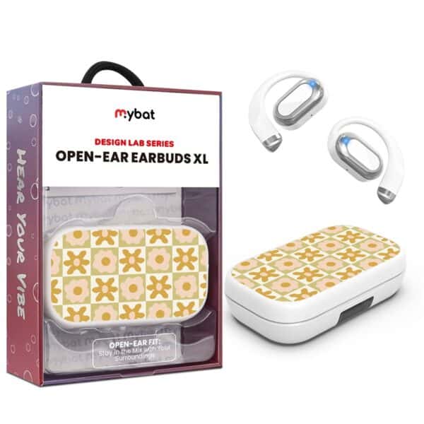 MyBat Design Lab Open-Ear Earbuds XL – White – Flower Grid