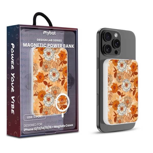 MyBat Design Lab 5000mAh Magnetic Wireless Power Bank – White – Retro Bouquet