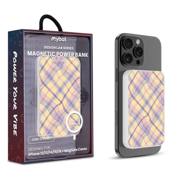 MyBat Design Lab 5000mAh Magnetic Wireless Power Bank – Pink – Plaid Patch