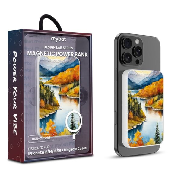 MyBat Design Lab 5000mAh Magnetic Wireless Power Bank – White – Impressionist Foliage