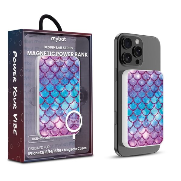 MyBat Design Lab 5000mAh Magnetic Wireless Power Bank – White – Mermaid Scales