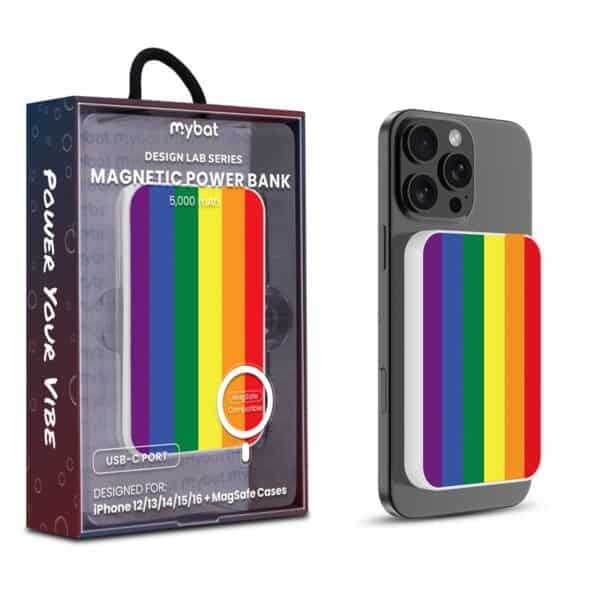 MyBat Design Lab 5000mAh Magnetic Wireless Power Bank – White – Rainbow Stripes