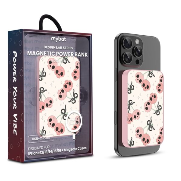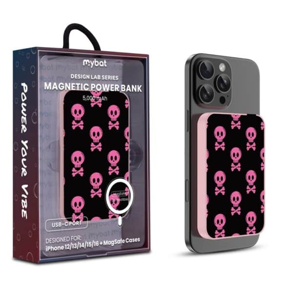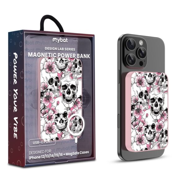 MyBat Design Lab 5000mAh Magnetic Wireless Power Bank – Pink – Cherry Skulls