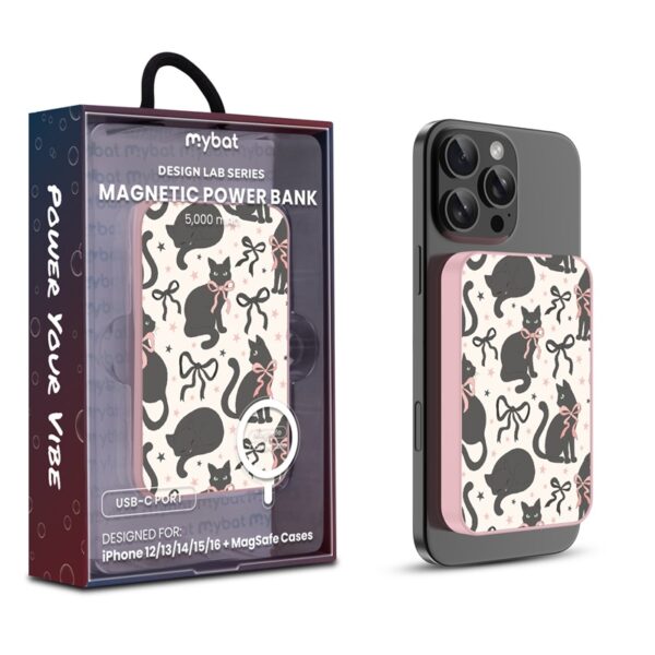 MyBat Design Lab 5000mAh Magnetic Wireless Power Bank – Pink – Coquette Cat