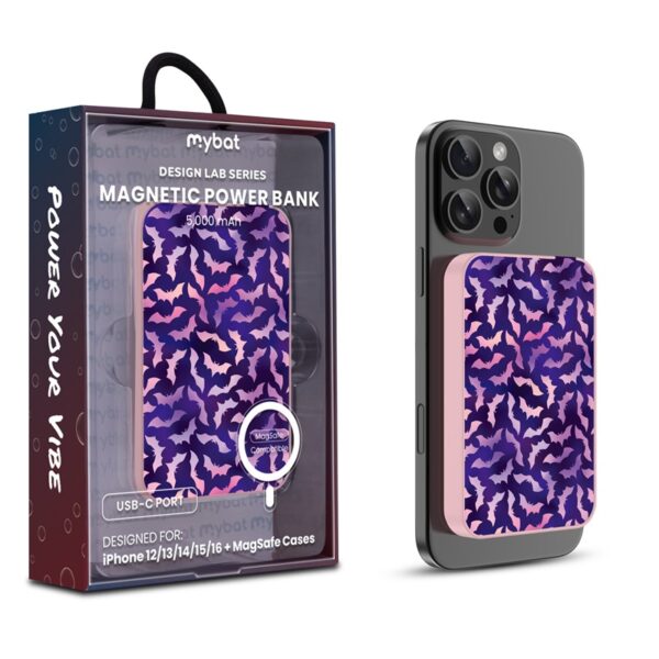 MyBat Design Lab 5000mAh Magnetic Wireless Power Bank – Pink – Twilight Bats
