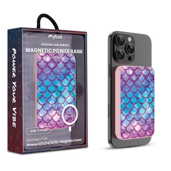 MyBat Design Lab 5000mAh Magnetic Wireless Power Bank – Pink – Mermaid Scales