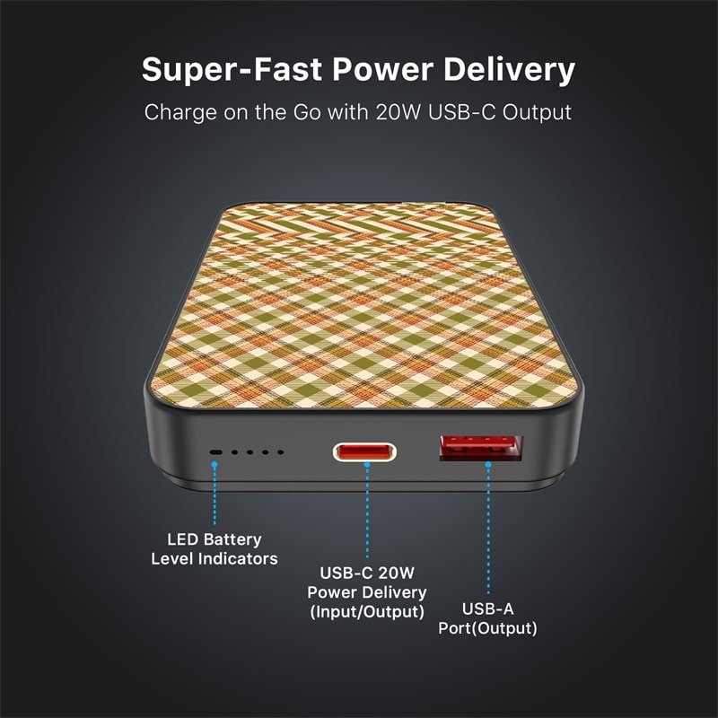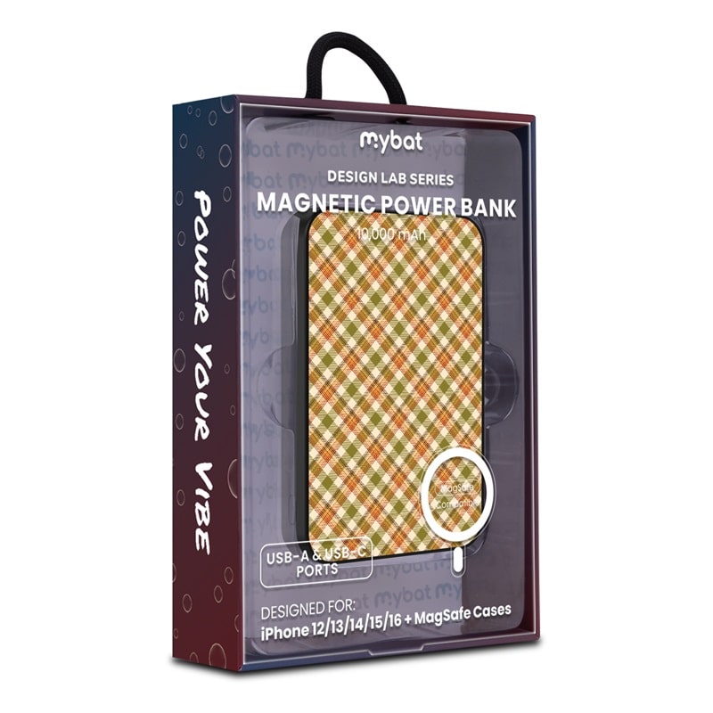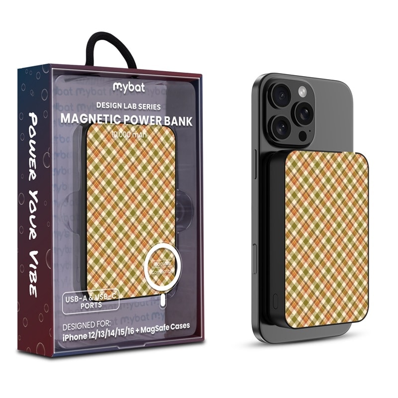 MyBat Design Lab 10000mAh Magnetic Wireless Power Bank – Black – Autumn Tartan