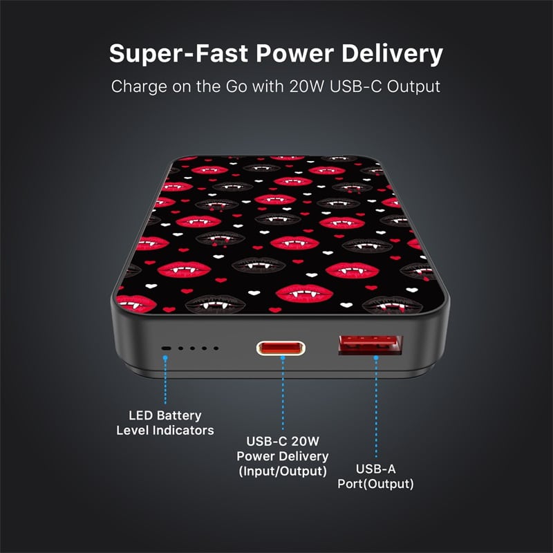 Experiment with every charge and style with the MyBat Design Lab Series Power Bank, where innovation meets bold design. Custom-printed on demand with simply genius designs, this power bank is engineered in the lab to deliver the perfect balance of form and function for reliable charging. With MagSafe compatibility and a powerful magnetic attachment, it securely snaps into place for seamless power delivery. Featuring 15W wireless charging and dual fast-charging ports (20W USB-C PD and 18W USB-A), this power bank delivers up to 30 hours of extra battery life and up to 2x full charges. Smart chip technology ensures safe, efficient charging, while its pocket-sized portability makes it ideal for on-the-go use. Formulated for all tastes, the Design Lab Series Power Bank is built to power your vibe with cutting-edge style and performance.
