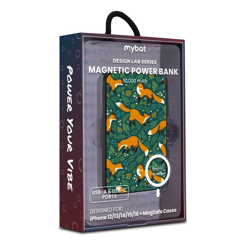Experiment with every charge and style with the MyBat Design Lab Series Power Bank, where innovation meets bold design. Custom-printed on demand with simply genius designs, this power bank is engineered in the lab to deliver the perfect balance of form and function for reliable charging. With MagSafe compatibility and a powerful magnetic attachment, it securely snaps into place for seamless power delivery. Featuring 15W wireless charging and dual fast-charging ports (20W USB-C PD and 18W USB-A), this power bank delivers up to 30 hours of extra battery life and up to 2x full charges. Smart chip technology ensures safe, efficient charging, while its pocket-sized portability makes it ideal for on-the-go use. Formulated for all tastes, the Design Lab Series Power Bank is built to power your vibe with cutting-edge style and performance.