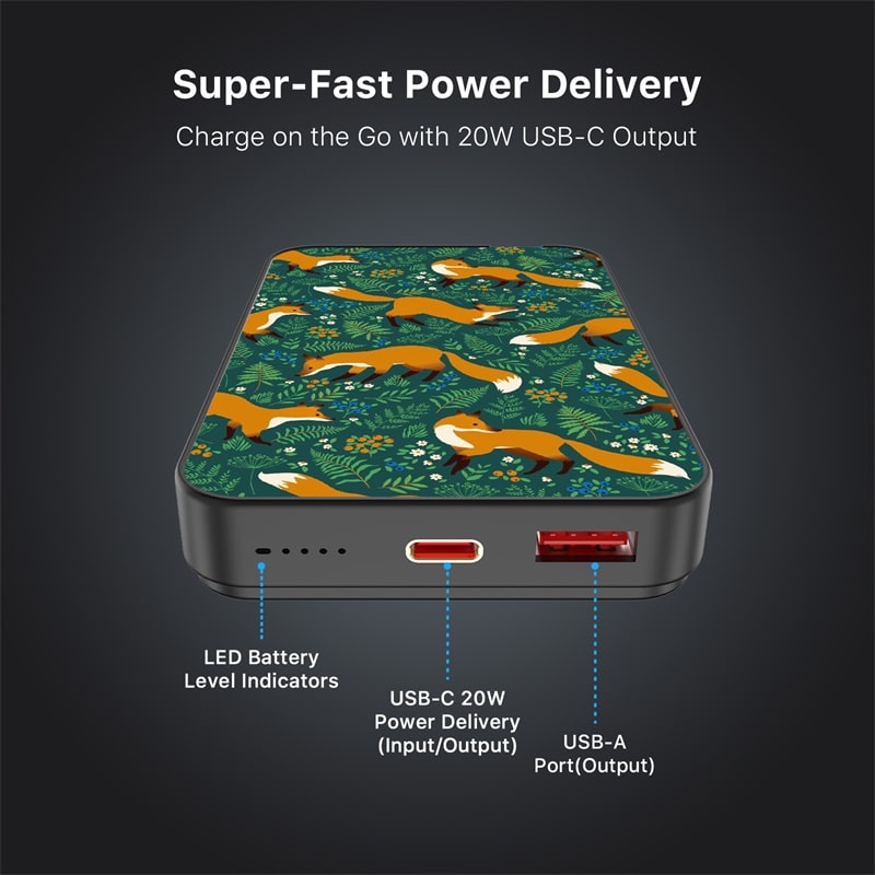 • Dual Ports: Includes 20W USB-C PD and 18W USB-A for fast charging.