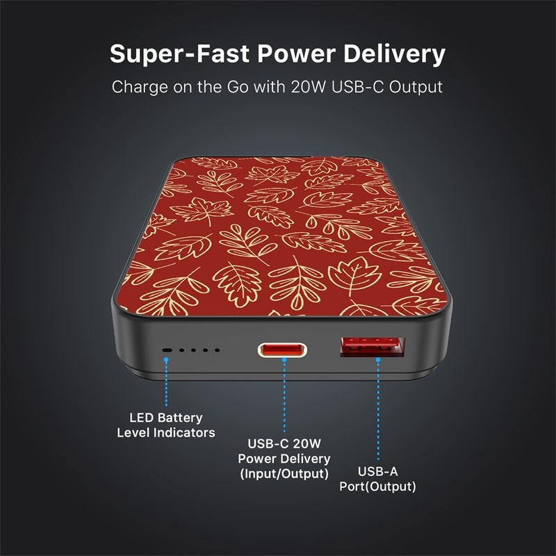 Experiment with every charge and style with the MyBat Design Lab Series Power Bank, where innovation meets bold design. Custom-printed on demand with simply genius designs, this power bank is engineered in the lab to deliver the perfect balance of form and function for reliable charging. With MagSafe compatibility and a powerful magnetic attachment, it securely snaps into place for seamless power delivery. Featuring 15W wireless charging and dual fast-charging ports (20W USB-C PD and 18W USB-A), this power bank delivers up to 30 hours of extra battery life and up to 2x full charges. Smart chip technology ensures safe, efficient charging, while its pocket-sized portability makes it ideal for on-the-go use. Formulated for all tastes, the Design Lab Series Power Bank is built to power your vibe with cutting-edge style and performance.