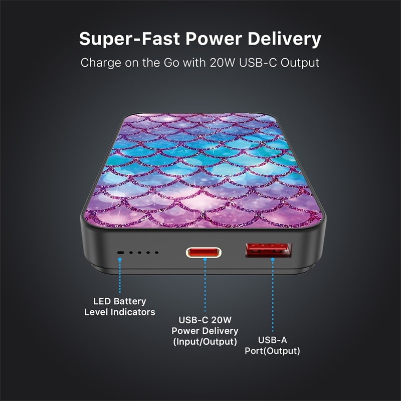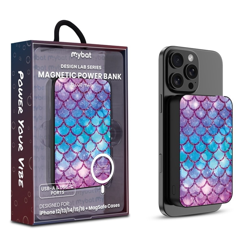 MyBat Design Lab 10000mAh Magnetic Wireless Power Bank – Black – Mermaid Scales