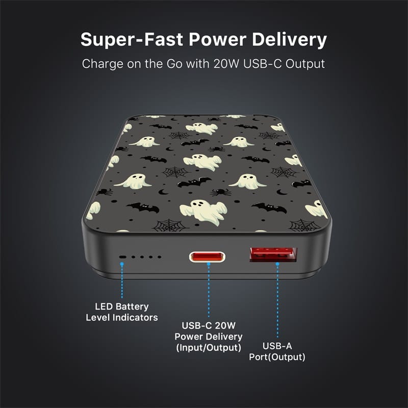 Experiment with every charge and style with the MyBat Design Lab Series Power Bank, where innovation meets bold design. Custom-printed on demand with simply genius designs, this power bank is engineered in the lab to deliver the perfect balance of form and function for reliable charging. With MagSafe compatibility and a powerful magnetic attachment, it securely snaps into place for seamless power delivery. Featuring 15W wireless charging and dual fast-charging ports (20W USB-C PD and 18W USB-A), this power bank delivers up to 30 hours of extra battery life and up to 2x full charges. Smart chip technology ensures safe, efficient charging, while its pocket-sized portability makes it ideal for on-the-go use. Formulated for all tastes, the Design Lab Series Power Bank is built to power your vibe with cutting-edge style and performance.