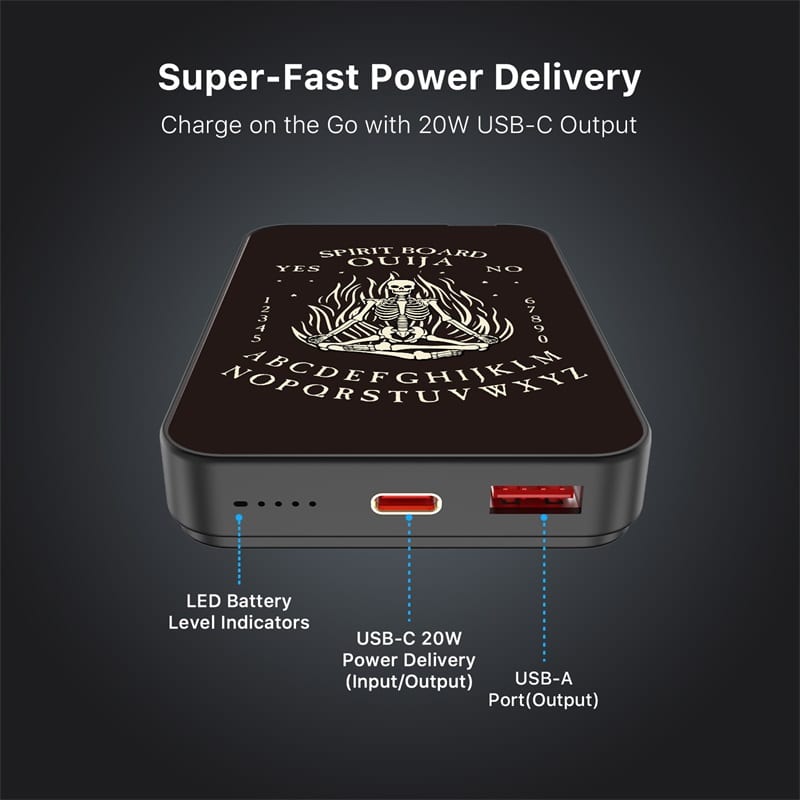 Experiment with every charge and style with the MyBat Design Lab Series Power Bank, where innovation meets bold design. Custom-printed on demand with simply genius designs, this power bank is engineered in the lab to deliver the perfect balance of form and function for reliable charging. With MagSafe compatibility and a powerful magnetic attachment, it securely snaps into place for seamless power delivery. Featuring 15W wireless charging and dual fast-charging ports (20W USB-C PD and 18W USB-A), this power bank delivers up to 30 hours of extra battery life and up to 2x full charges. Smart chip technology ensures safe, efficient charging, while its pocket-sized portability makes it ideal for on-the-go use. Formulated for all tastes, the Design Lab Series Power Bank is built to power your vibe with cutting-edge style and performance.