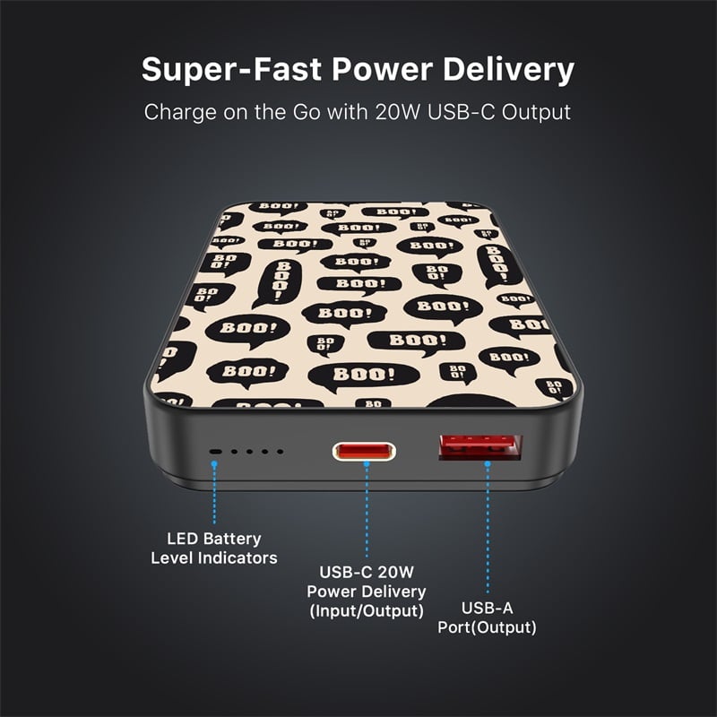 Experiment with every charge and style with the MyBat Design Lab Series Power Bank, where innovation meets bold design. Custom-printed on demand with simply genius designs, this power bank is engineered in the lab to deliver the perfect balance of form and function for reliable charging. With MagSafe compatibility and a powerful magnetic attachment, it securely snaps into place for seamless power delivery. Featuring 15W wireless charging and dual fast-charging ports (20W USB-C PD and 18W USB-A), this power bank delivers up to 30 hours of extra battery life and up to 2x full charges. Smart chip technology ensures safe, efficient charging, while its pocket-sized portability makes it ideal for on-the-go use. Formulated for all tastes, the Design Lab Series Power Bank is built to power your vibe with cutting-edge style and performance.