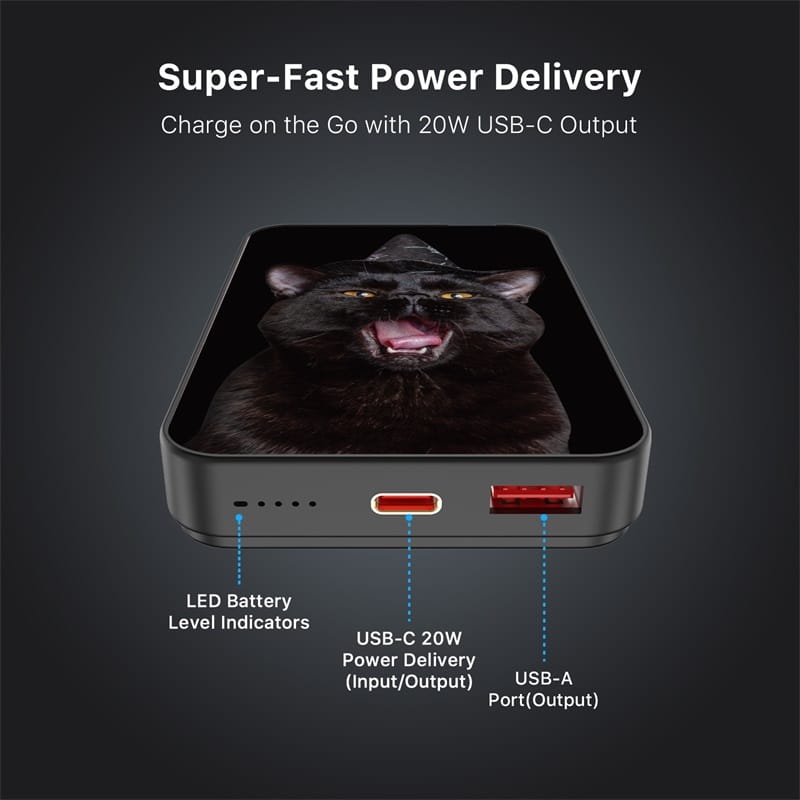 Experiment with every charge and style with the MyBat Design Lab Series Power Bank, where innovation meets bold design. Custom-printed on demand with simply genius designs, this power bank is engineered in the lab to deliver the perfect balance of form and function for reliable charging. With MagSafe compatibility and a powerful magnetic attachment, it securely snaps into place for seamless power delivery. Featuring 15W wireless charging and dual fast-charging ports (20W USB-C PD and 18W USB-A), this power bank delivers up to 30 hours of extra battery life and up to 2x full charges. Smart chip technology ensures safe, efficient charging, while its pocket-sized portability makes it ideal for on-the-go use. Formulated for all tastes, the Design Lab Series Power Bank is built to power your vibe with cutting-edge style and performance.