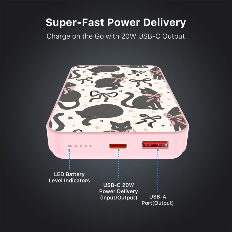 MyBat Design Lab 10000mAh Magnetic Wireless Power Bank – Pink – Coquette Cat