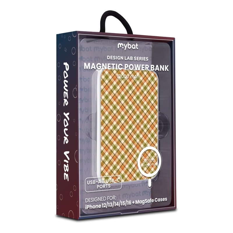 MyBat Design Lab 10000mAh Magnetic Wireless Power Bank – White – Autumn Tartan