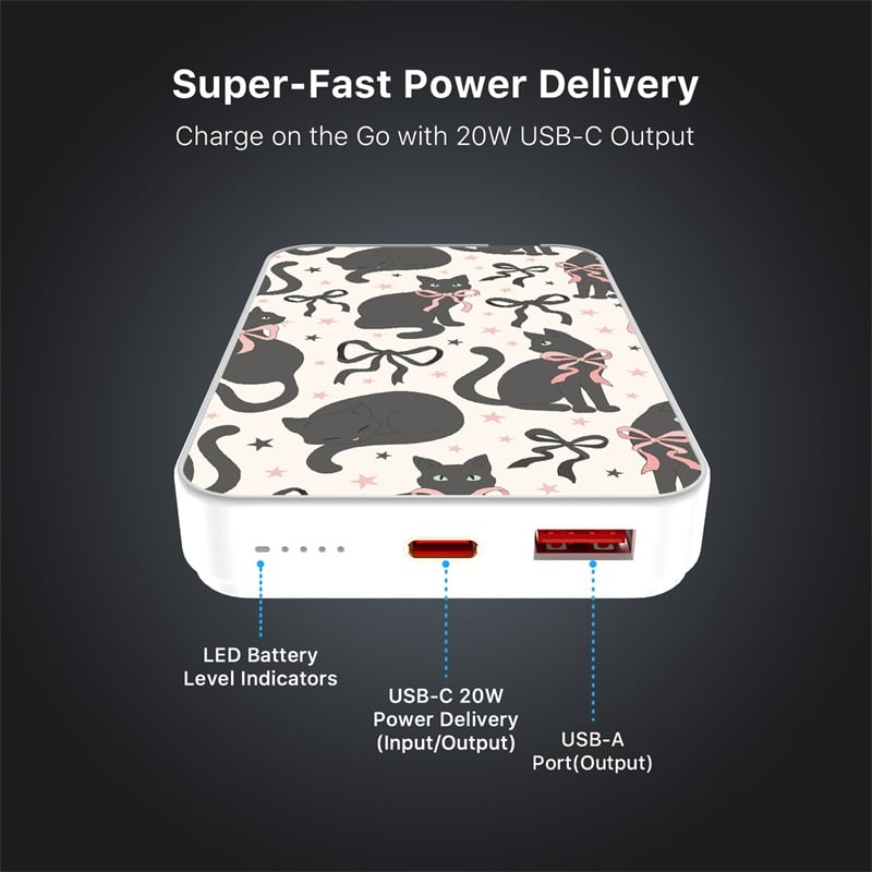 MyBat Design Lab 10000mAh Magnetic Wireless Power Bank – White – Coquette Cat