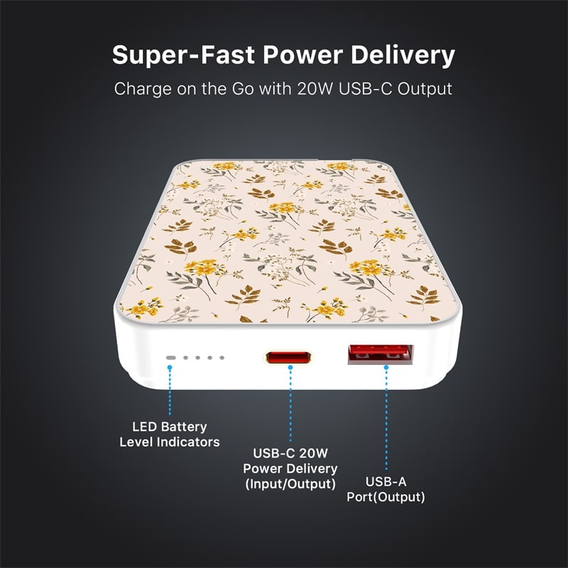 MyBat Design Lab 10000mAh Magnetic Wireless Power Bank – White – Ditsy Botanical