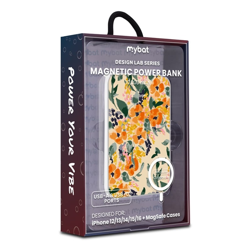 Experiment with every charge and style with the MyBat Design Lab Series Power Bank, where innovation meets bold design. Custom-printed on demand with simply genius designs, this power bank is engineered in the lab to deliver the perfect balance of form and function for reliable charging. With MagSafe compatibility and a powerful magnetic attachment, it securely snaps into place for seamless power delivery. Featuring 15W wireless charging and dual fast-charging ports (20W USB-C PD and 18W USB-A), this power bank delivers up to 30 hours of extra battery life and up to 2x full charges. Smart chip technology ensures safe, efficient charging, while its pocket-sized portability makes it ideal for on-the-go use. Formulated for all tastes, the Design Lab Series Power Bank is built to power your vibe with cutting-edge style and performance.
