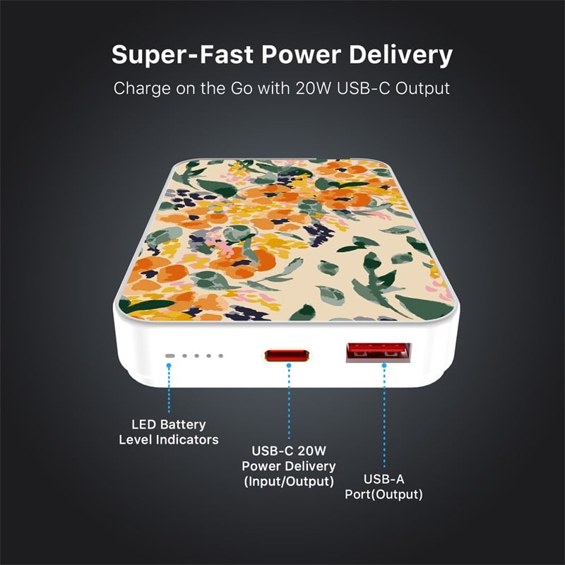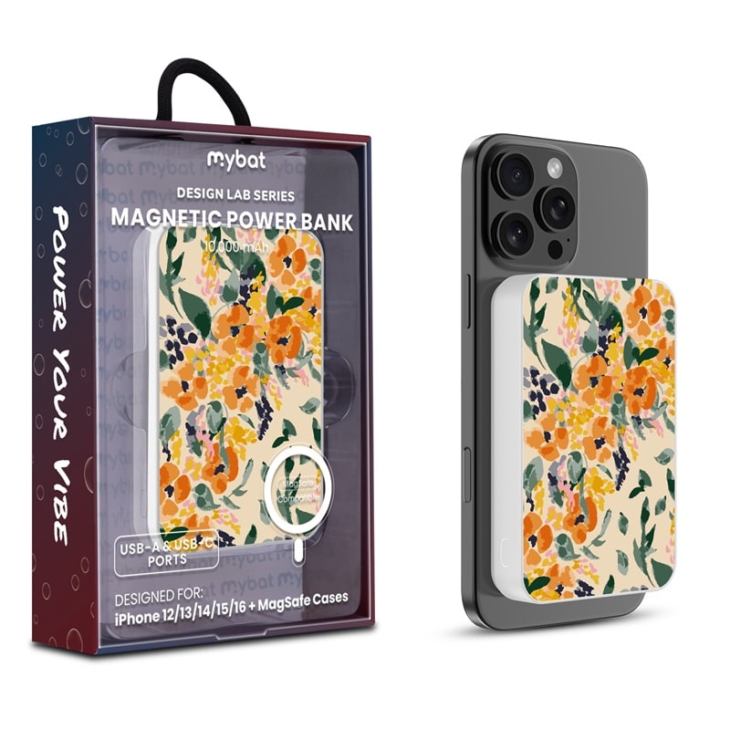 MyBat Design Lab 10000mAh Magnetic Wireless Power Bank – White – Marigold Mix