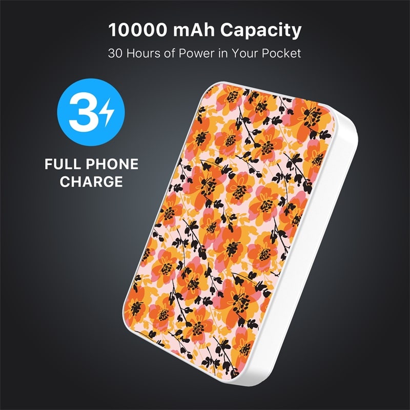 Experiment with every charge and style with the MyBat Design Lab Series Power Bank, where innovation meets bold design. Custom-printed on demand with simply genius designs, this power bank is engineered in the lab to deliver the perfect balance of form and function for reliable charging. With MagSafe compatibility and a powerful magnetic attachment, it securely snaps into place for seamless power delivery. Featuring 15W wireless charging and dual fast-charging ports (20W USB-C PD and 18W USB-A), this power bank delivers up to 30 hours of extra battery life and up to 2x full charges. Smart chip technology ensures safe, efficient charging, while its pocket-sized portability makes it ideal for on-the-go use. Formulated for all tastes, the Design Lab Series Power Bank is built to power your vibe with cutting-edge style and performance.