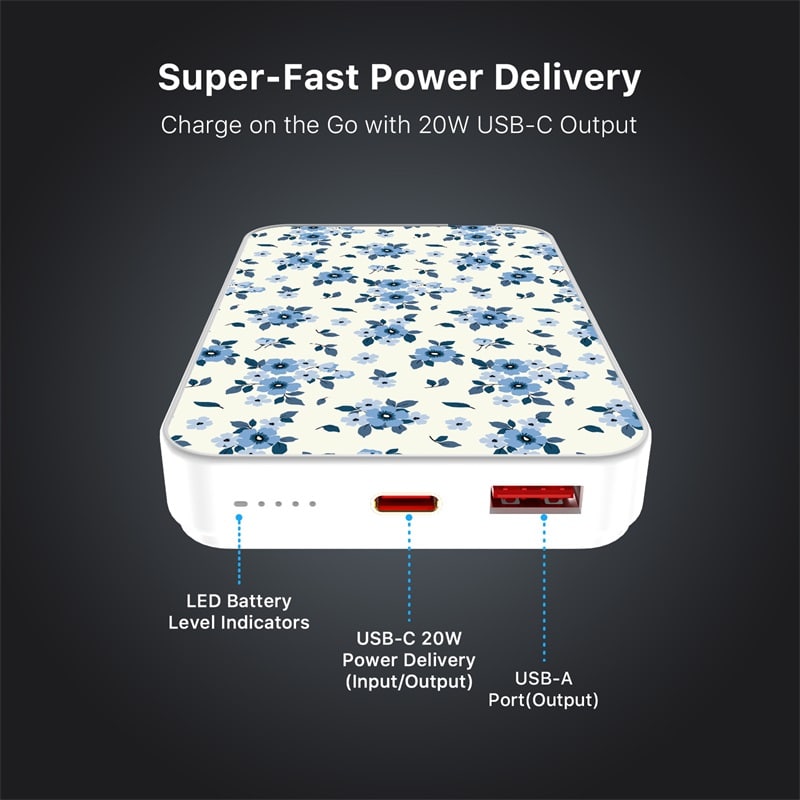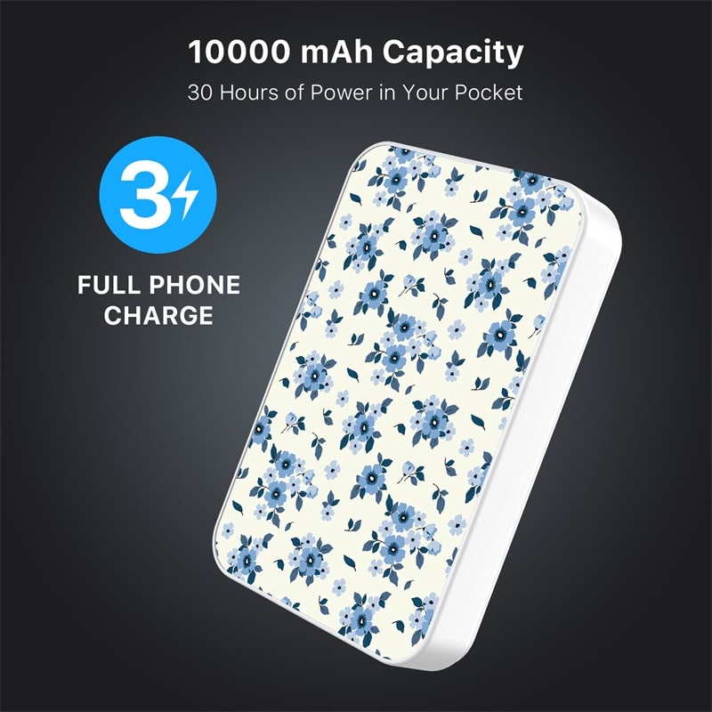 MyBat Design Lab 10000mAh Magnetic Wireless Power Bank – White – Porcelain Petals