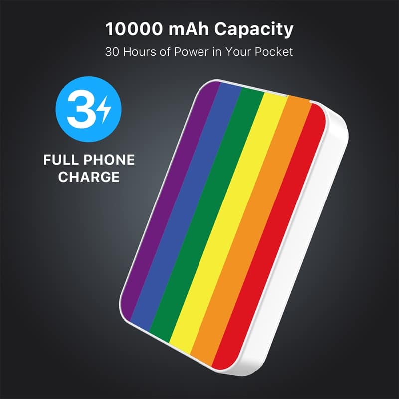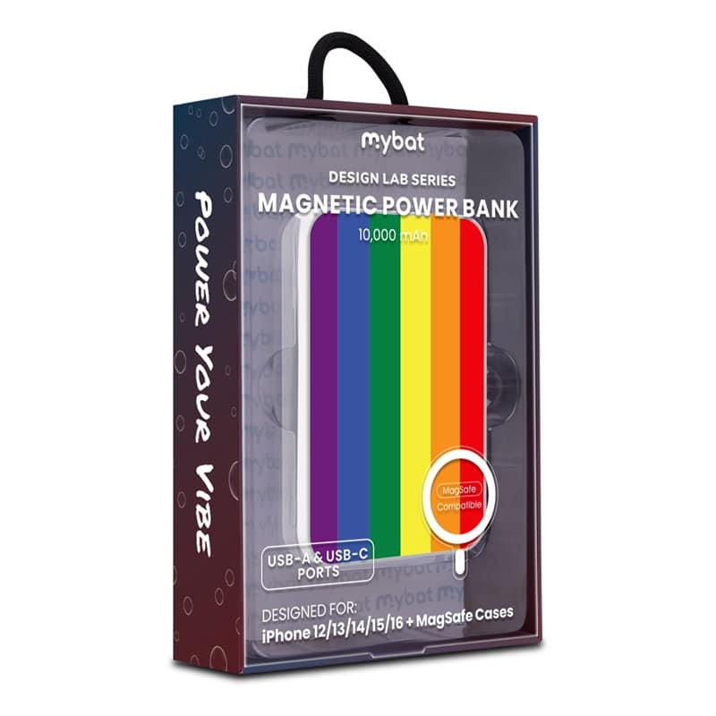 MyBat Design Lab 10000mAh Magnetic Wireless Power Bank – White – Rainbow Stripes