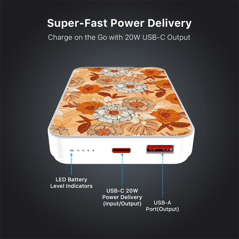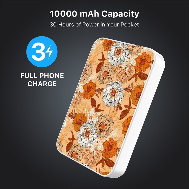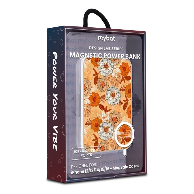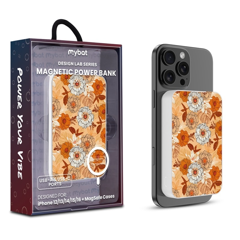 MyBat Design Lab 10000mAh Magnetic Wireless Power Bank – White – Retro Bouquet