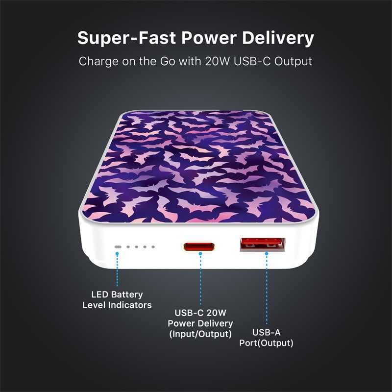 MyBat Design Lab 10000mAh Magnetic Wireless Power Bank – White – Twilight Bats