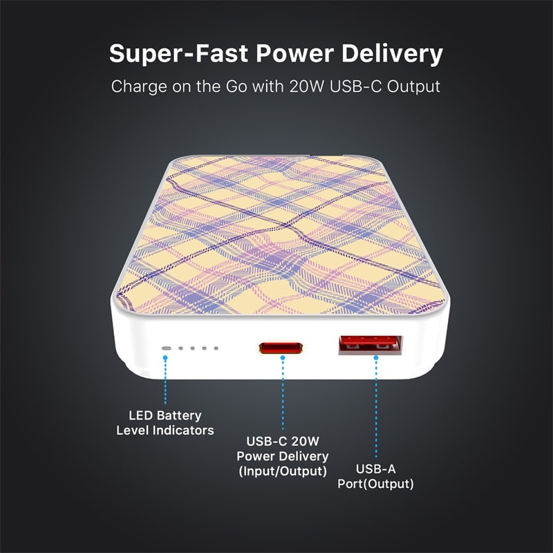 MyBat Design Lab 10000mAh Magnetic Wireless Power Bank – White – Wavy Plaid