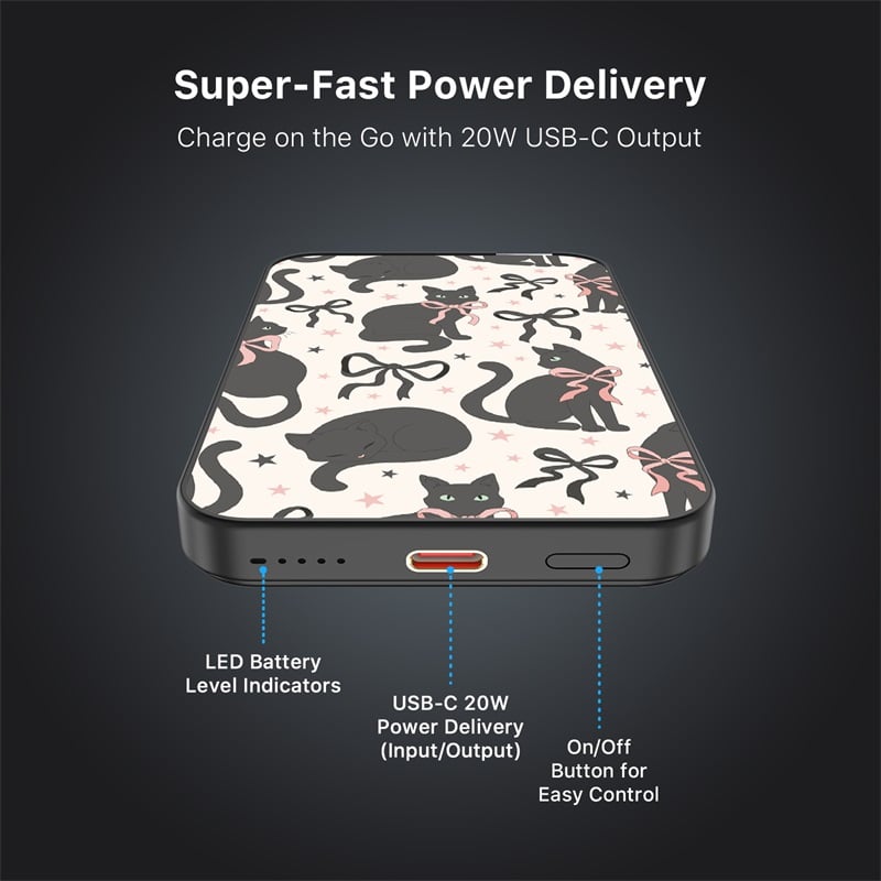 Experiment with every charge and style with the MyBat Design Lab Series Power Bank, where innovation meets bold design. Custom-printed on demand with Simply Genius Designs, this power bank is engineered in the lab to deliver the perfect balance of form and function for portable charging. With MagSafe compatibility and a powerful magnetic attachment, it securely connects for effortless and reliable power. Featuring 15W wireless charging and a 20W USB-C PD port, this compact power bank provides up to 15 hours of extra battery life and 1x full charge. Smart chip technology ensures safe, efficient charging, while its pocket-sized portability and case-friendly design make it perfect for life on the go. Formulated for all tastes, the Design Lab Series Power Bank powers your vibe with compact style and performance.