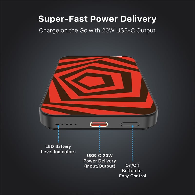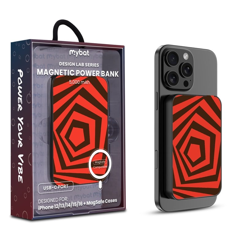 Experiment with every charge and style with the MyBat Design Lab Series Power Bank, where innovation meets bold design. Custom-printed on demand with Simply Genius Designs, this power bank is engineered in the lab to deliver the perfect balance of form and function for portable charging. With MagSafe compatibility and a powerful magnetic attachment, it securely connects for effortless and reliable power. Featuring 15W wireless charging and a 20W USB-C PD port, this compact power bank provides up to 15 hours of extra battery life and 1x full charge. Smart chip technology ensures safe, efficient charging, while its pocket-sized portability and case-friendly design make it perfect for life on the go. Formulated for all tastes, the Design Lab Series Power Bank powers your vibe with compact style and performance.