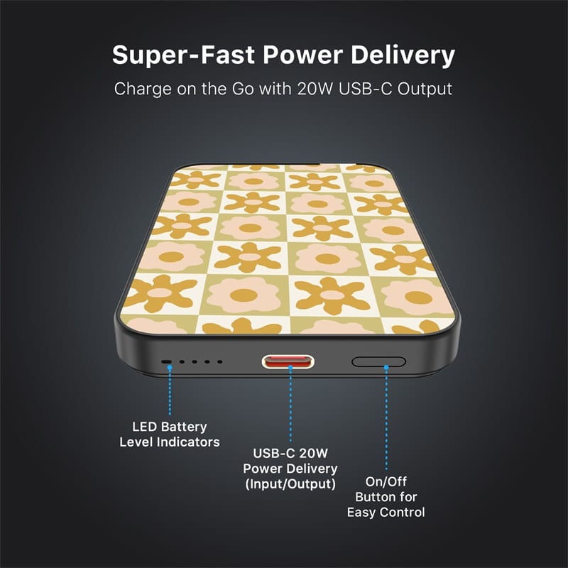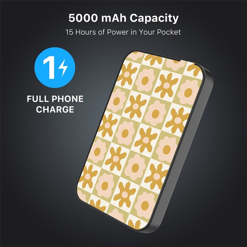 MyBat Design Lab 5000mAh Magnetic Wireless Power Bank – Black – Flower Grid
