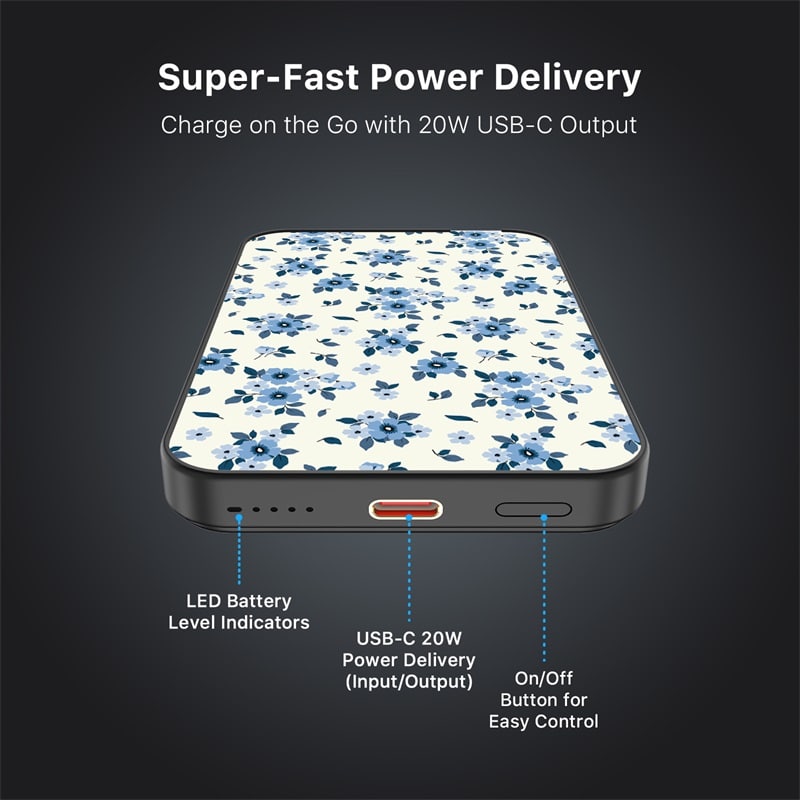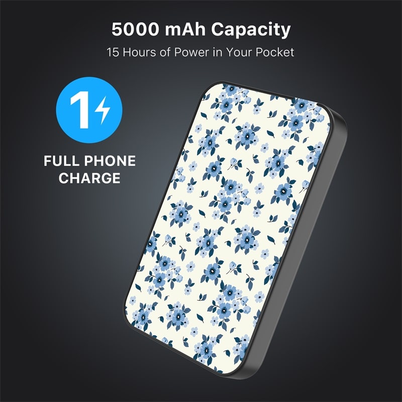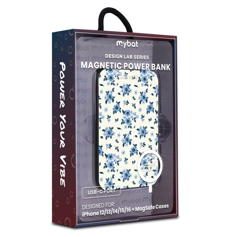 MyBat Design Lab 5000mAh Magnetic Wireless Power Bank – Black – Porcelain Petals