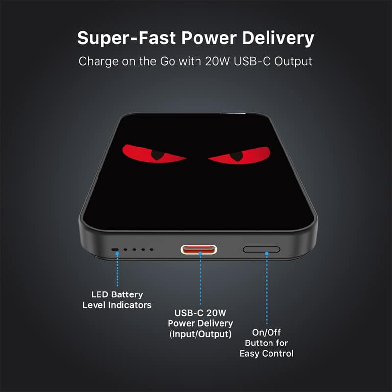 MyBat Design Lab 5000mAh Magnetic Wireless Power Bank – Black – Red Eyes
