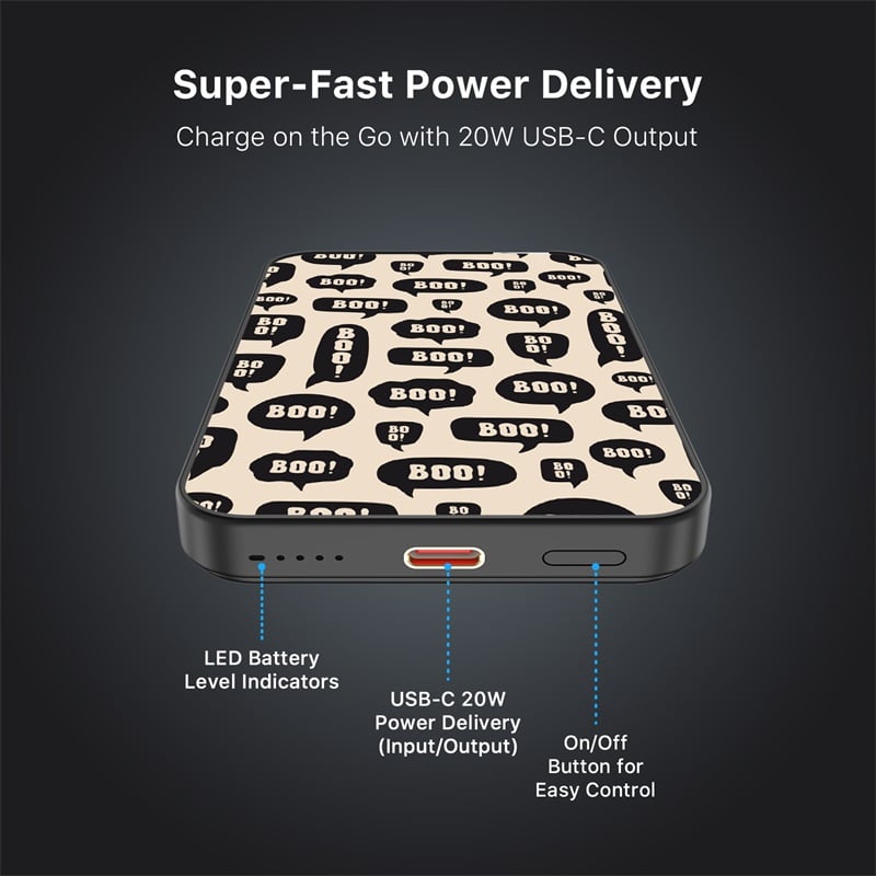 Experiment with every charge and style with the MyBat Design Lab Series Power Bank, where innovation meets bold design. Custom-printed on demand with Simply Genius Designs, this power bank is engineered in the lab to deliver the perfect balance of form and function for portable charging. With MagSafe compatibility and a powerful magnetic attachment, it securely connects for effortless and reliable power. Featuring 15W wireless charging and a 20W USB-C PD port, this compact power bank provides up to 15 hours of extra battery life and 1x full charge. Smart chip technology ensures safe, efficient charging, while its pocket-sized portability and case-friendly design make it perfect for life on the go. Formulated for all tastes, the Design Lab Series Power Bank powers your vibe with compact style and performance.