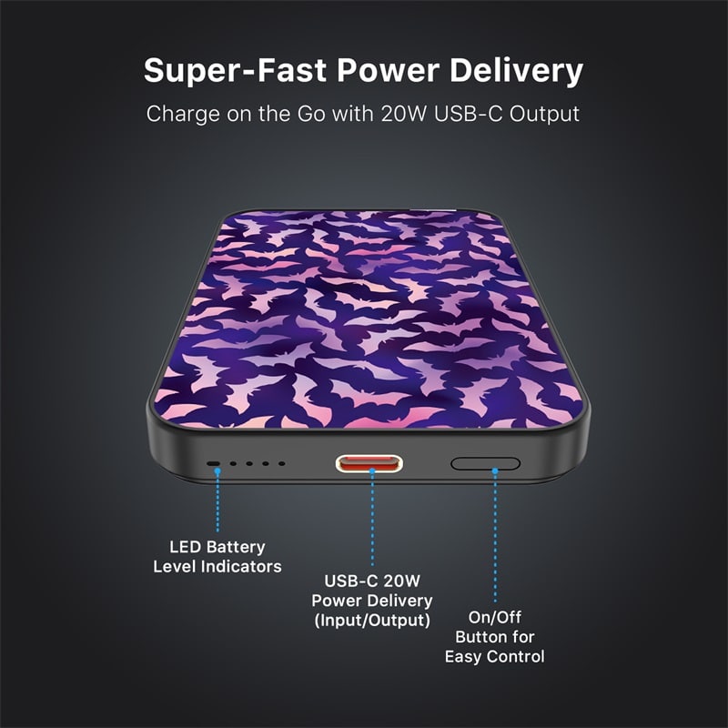 MyBat Design Lab 5000mAh Magnetic Wireless Power Bank – Black – Twilight Bats