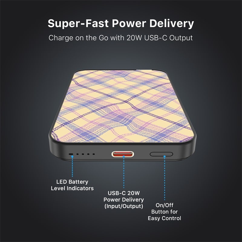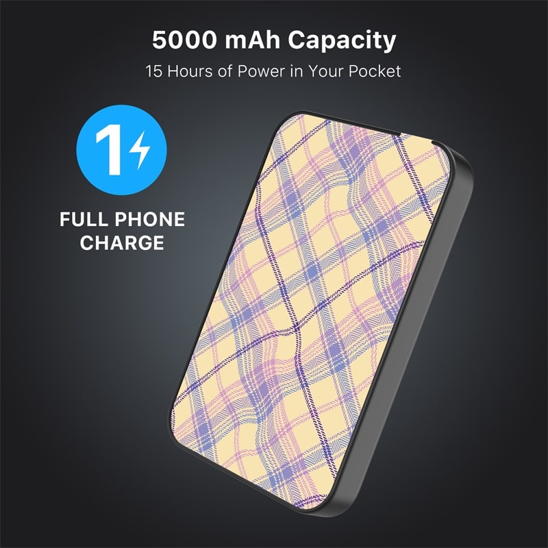 MyBat Design Lab 5000mAh Magnetic Wireless Power Bank – Black – Wavy Plaid