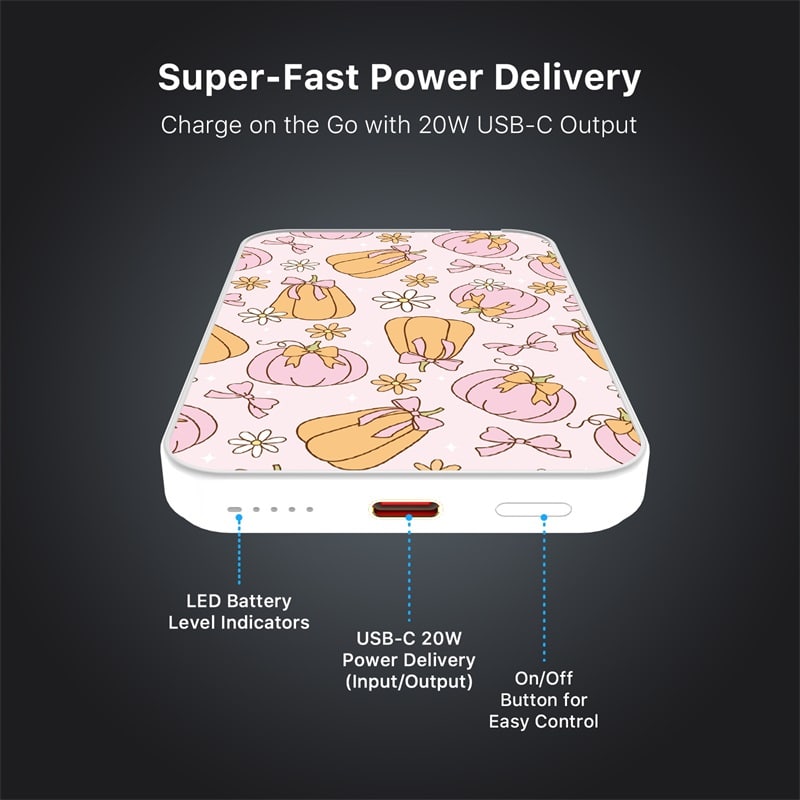 MyBat Design Lab 5000mAh Magnetic Wireless Power Bank – White – Bow – Tied Patch