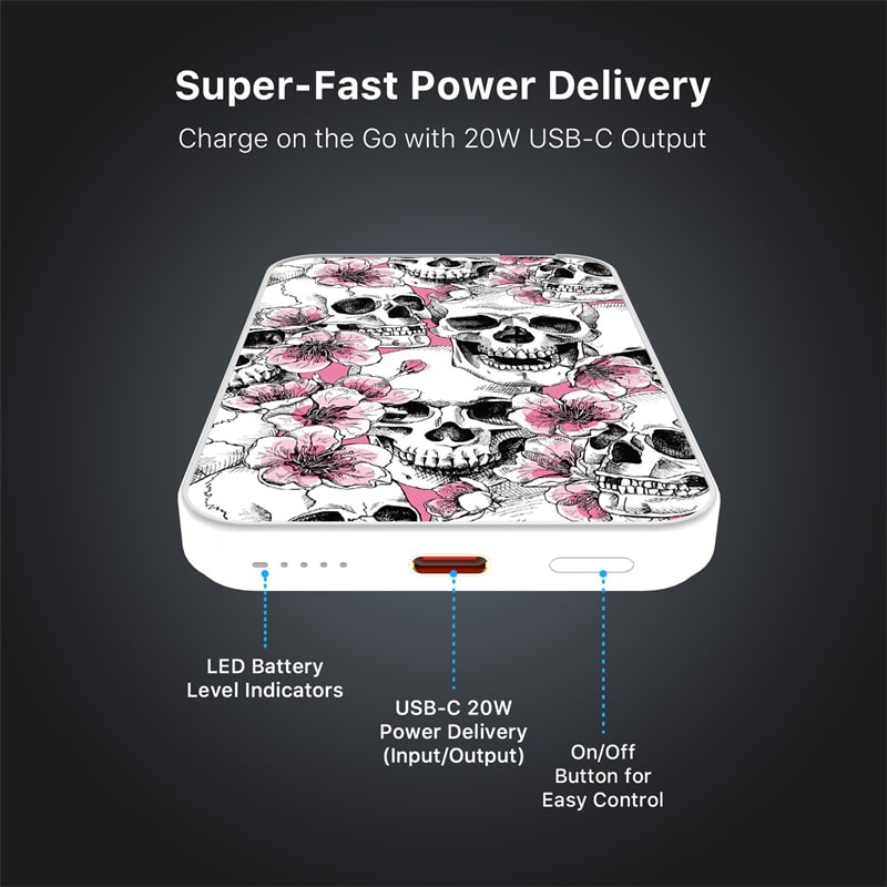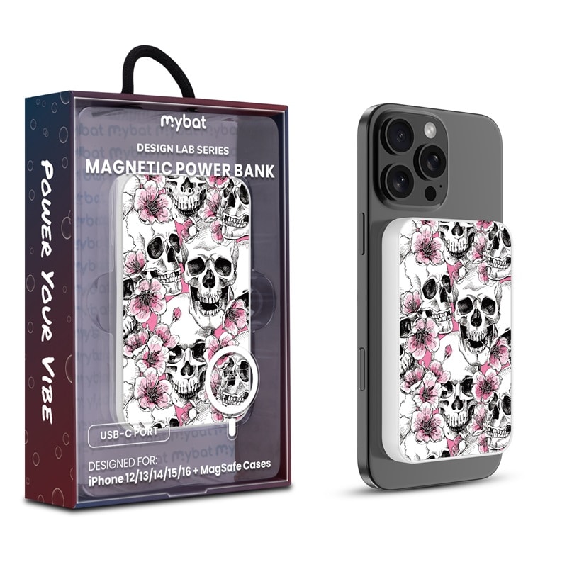 MyBat Design Lab 5000mAh Magnetic Wireless Power Bank – White – Death Blooms