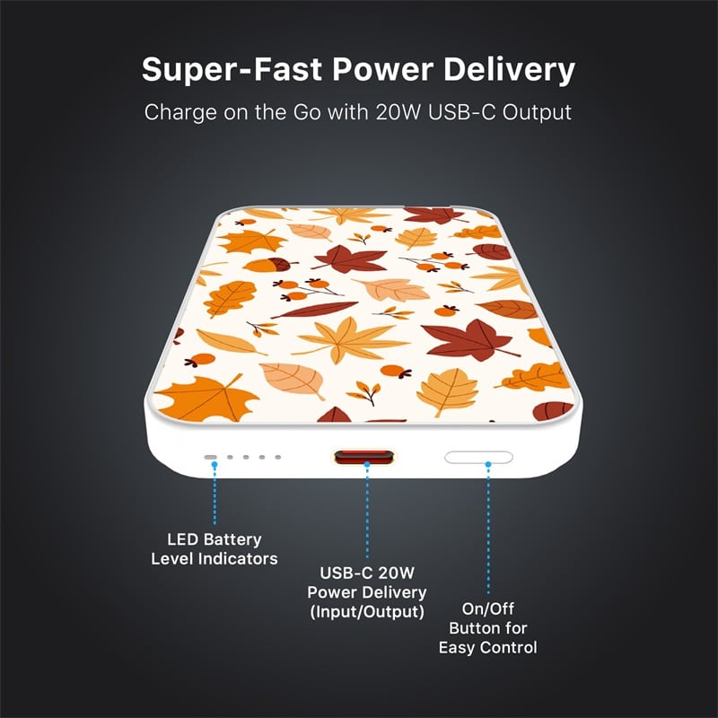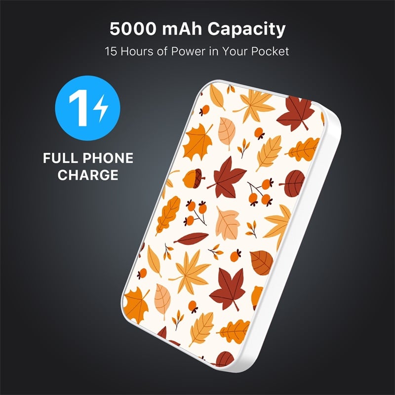 MyBat Design Lab 5000mAh Magnetic Wireless Power Bank – White – Falling Leaves